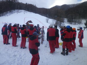 学校スキーの打ち合わせ中のインストラクターです。